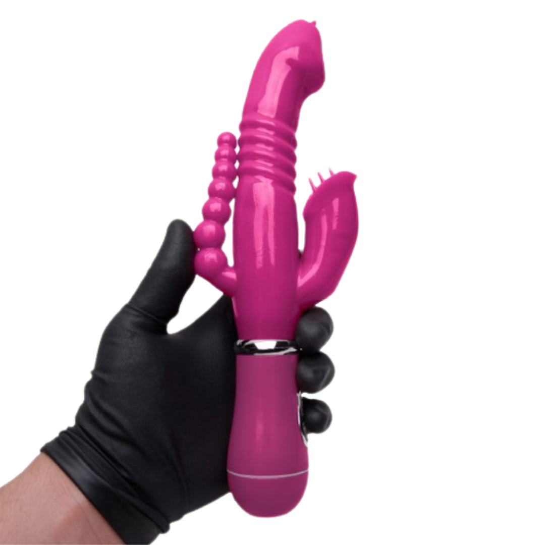 Vibração Multifuncional: Estimule o ponto G, o clitóris e o ânus simultaneamente com um único dispositivo, oferecendo uma experiência de prazer abrangente.